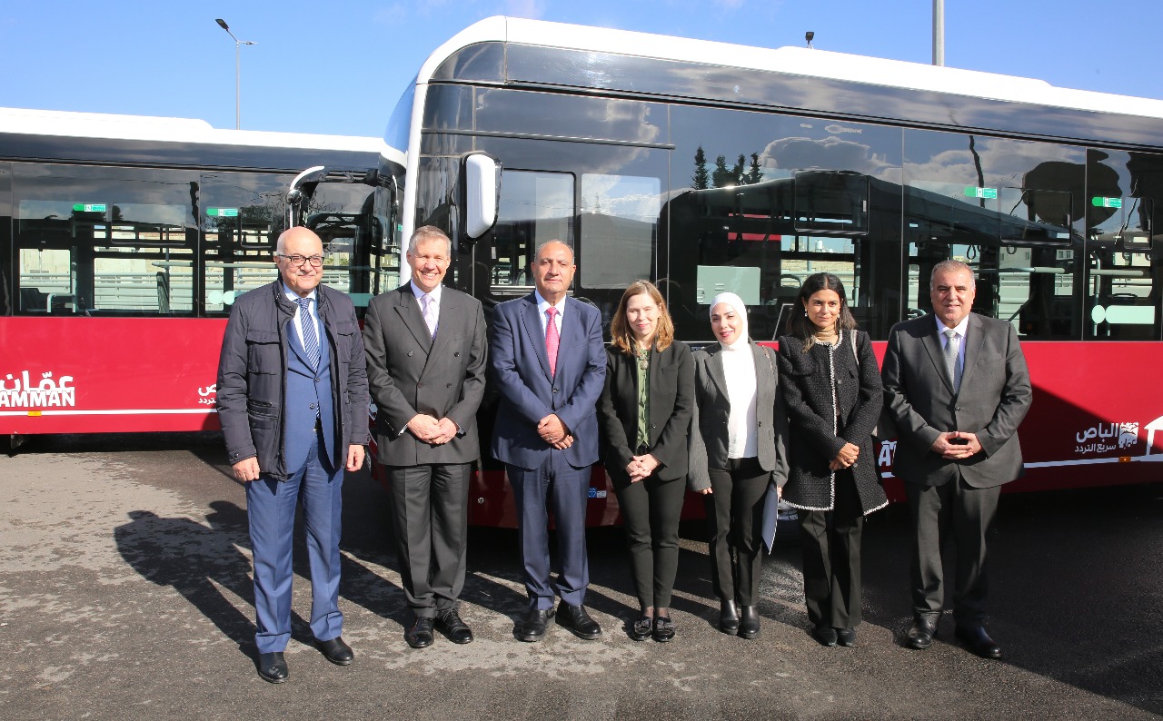 تفقد رئيس لجنة أمانة عمان الكبرى الدكتور يوسف الشواربة ، اليوم الاحد، التشغيل التجريبي للحافلات الكهربائية الجديدة التي تم اطلاقها ضمن "المسار الأخضر" لمشروع الباص السريع، في محطة طارق، يرافقه السفير البريطاني لدى المملكة الأردنية الهاشمية فيليب هول، و المديرة الإقليمية لمنطقة شرق المتوسط، البنك الأوروبي لإعادة الإعمار والتنمية ( EBRD ) غريتشن بيري.