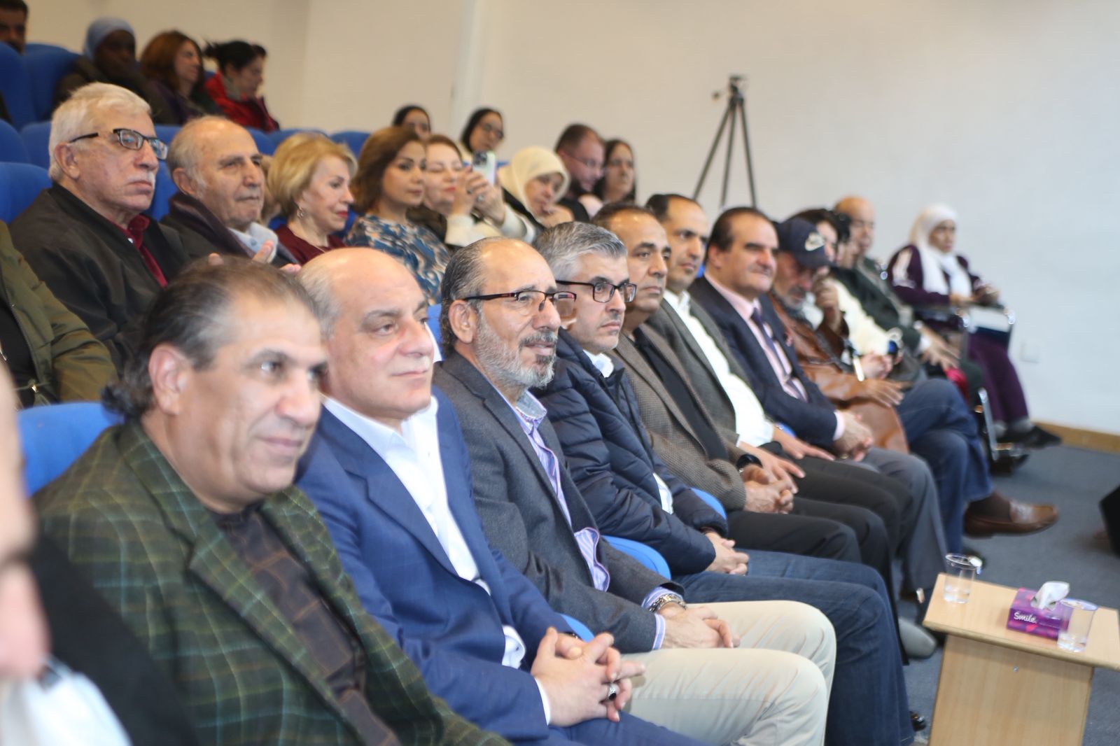 و حضر الامسية نائب مدير المدينة لشؤون التنمية المجتمعية حاتم الهملان والمدير التنفيذي للثقافة الدكتور ثامر الشوبكي ومدير مركز الحسين الثقافي أيمن خليفات .