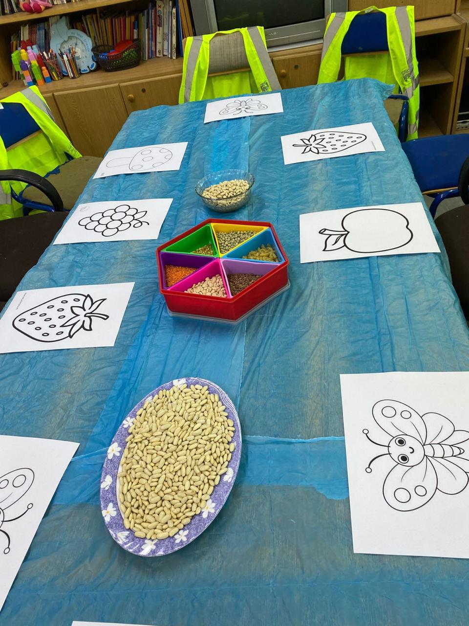 واشتملت الفعالية على استخدام الحبوب و البقوليات لإنشاء لوحات فنية على الورق والكرتون بشكل يساهم في تعزيز التركيز وتنمية مهارات وقدرات الأطفال ذوي الإعاقة.